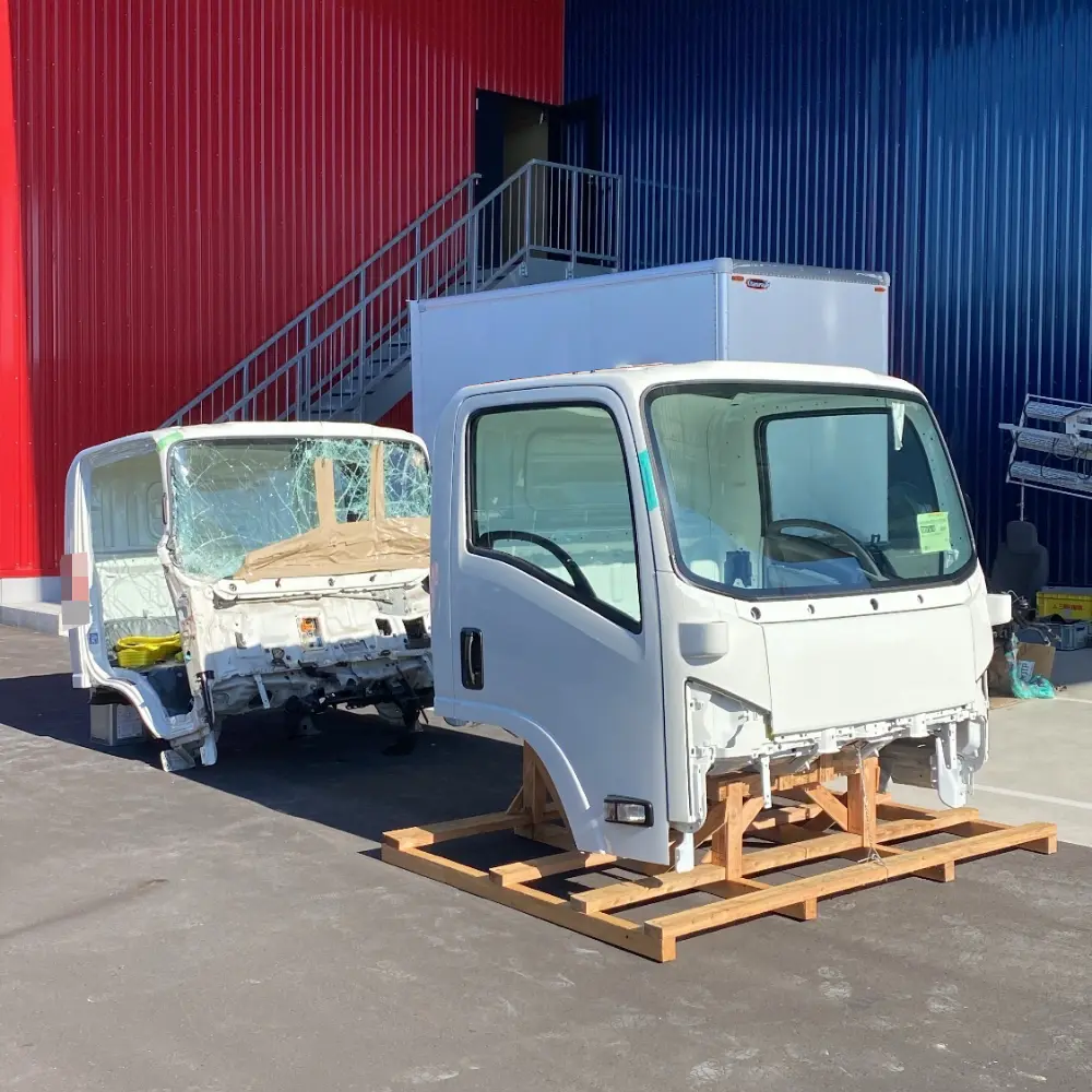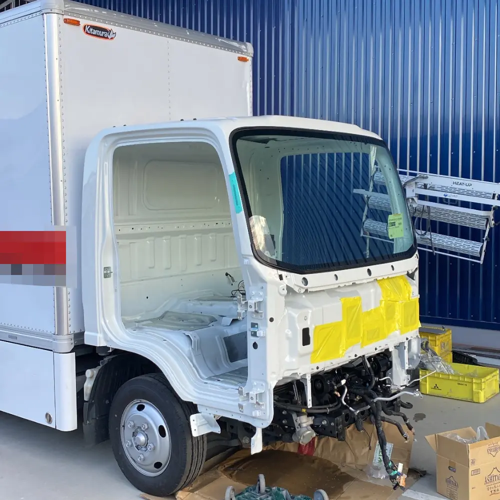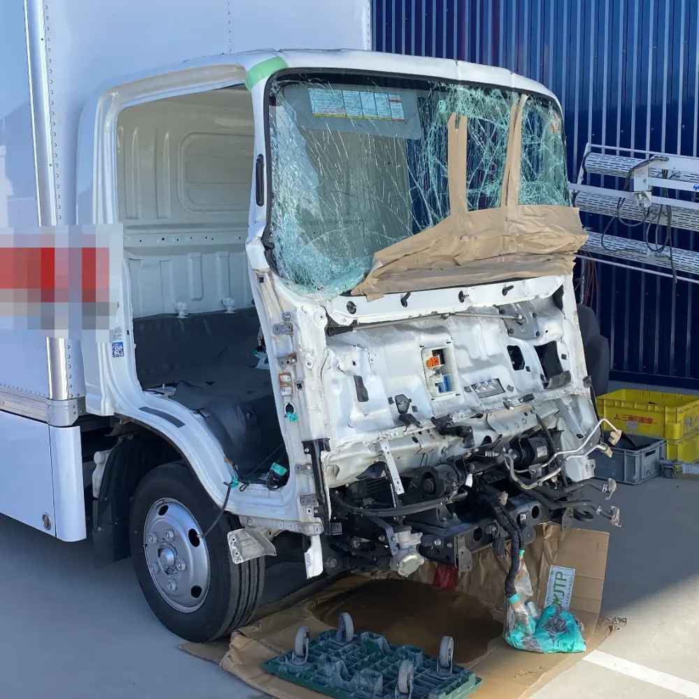 大きく破損したトラック前面部分の取り替え修理を行いました。